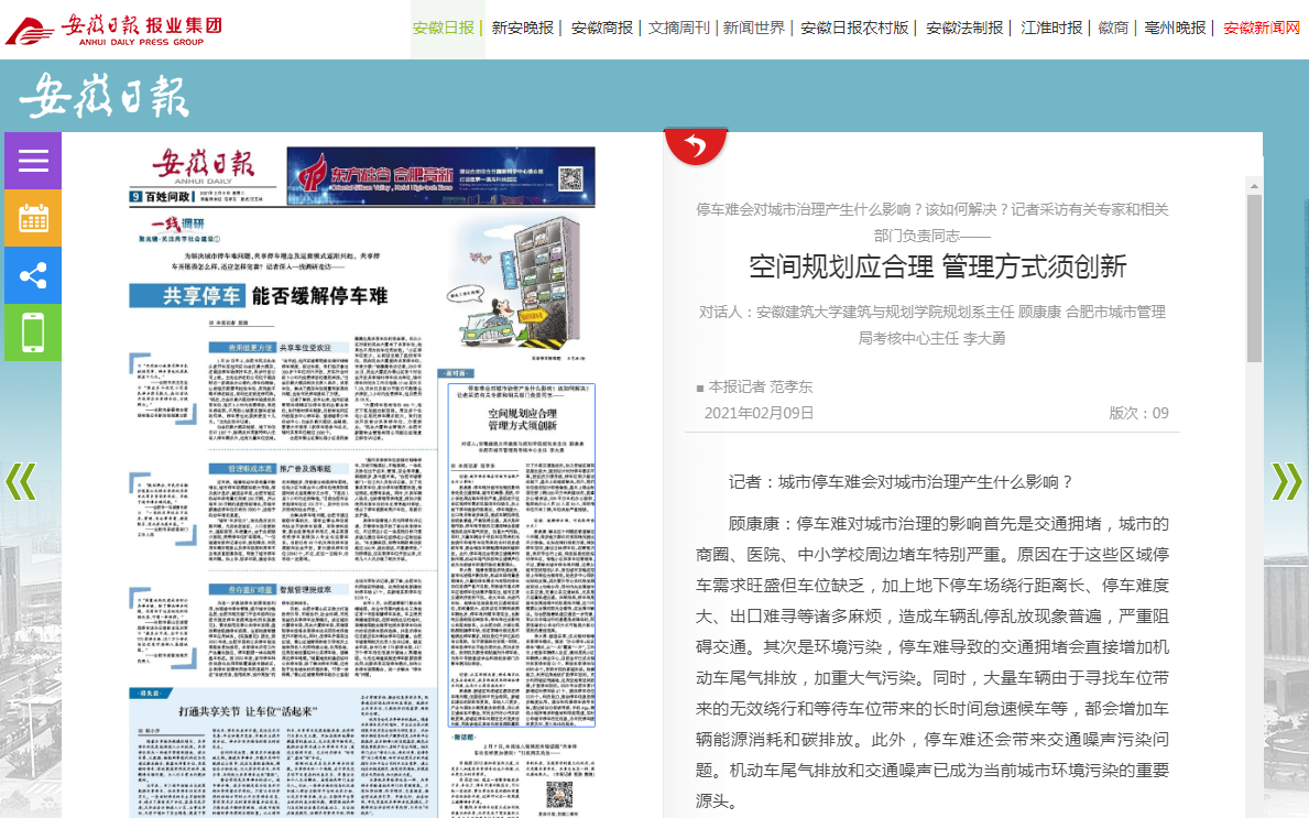 【媒体建大】安徽日报:空间规划需合理 管理方式须创新