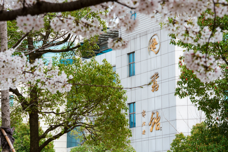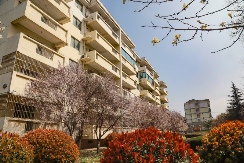 大道两旁绿树成荫,小径两边繁花飞舞。校园内,清雅的玉兰伴着娇艳的桃花,更有早樱的花瓣零星散落,空气中弥漫着阵阵芬芳,共同诉说着对春天的希望。