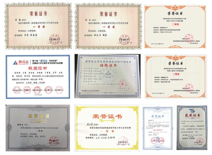 5年本专业学生获国家及省级大学生创新训练项目60余项。学生在互联网+、挑战杯、安徽省大学生化学竞赛、全国大学生化学实验创新设计大赛等科研赛事中屡获奖项。近年来本专业学生考研平均录取率近40%,名列学校前茅,其中相当比例学生被国内外知名院校录取。毕业生就业率常年保持在96%以上,50%以上毕业生在能源材料、环境医药等大中型知名企业就业。他们大多已成为各单位的业务骨干和中坚力量。