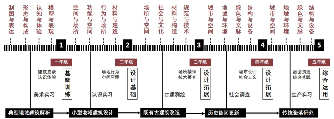 图3 “纵横结合、系统发展”建筑学专业人才培养模式
