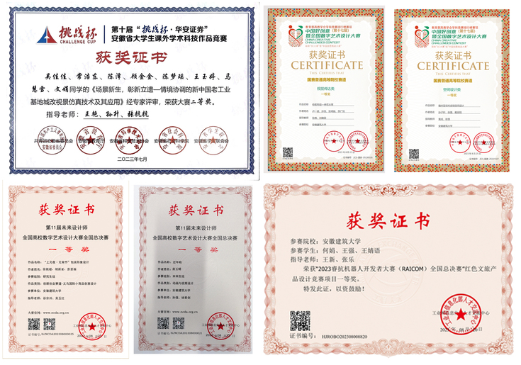 通过开展实习考察、邀请企业家讲座、在毕业设计等教学环节中引入企业导师,参加全国联合毕业设计等措施,加强产教融合,缩短学生与用人单位的距离,使学生能够快速适应企业与社会要求。积极探索实践环节多角度评价方法,鼓励和带领学生参加各类学科竞赛及教师教学科研项目,开展探索性、研究性的学习。在安徽省“互联网+”大学生创新创业大赛中,学生共获国家级铜奖1项、省级金奖1项,银奖2项,近3年在国内外各项学科专业竞赛如:挑战杯大赛、中国好创意暨全国数字艺术设计大赛、睿抗机器人开发者大赛、未来设计师、中国大学生计算机设计大赛等赛事中荣获省赛、国赛奖项100多项。
