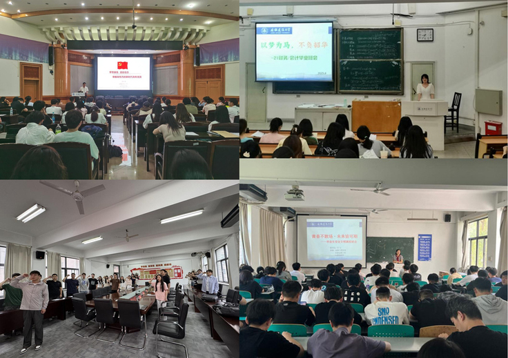 学院以“永葆本色担使命”为主线,构建起“理想信念+爱校荣校+榜样引领”的立体化毕业思政教育矩阵。学院党委书记为2025届全体毕业生党员上“最后一堂党课”,开启毕业教育序章,号召大家不断深入贯彻中央八项规定精神的主旨要义,坚定信念,敢于担当,坚守底线,将爱党报国的种子深植毕业生心间;辅导员们策划举办“最后一次主题班会”,分享学生四年前写给自己的一封信,陪同观看大学回忆视频,一幕幕重现的初见场景,让毕业生在重温校园时光中深化对建大精神的认同,将“进德、弘毅、博学、善建”的校训融入血脉,化作未来人生的精神底色;学院积极开展“榜样的力量”“优秀毕业生风采展”等先进典型选树活动,在考研考博、就业创业等领域推选优秀毕业生代表,通过线上线下事迹宣传,让奋斗故事成为最生动的教材,激励全体毕业生以昂扬姿态奔赴山海,在新的赛道上续写经管人的奋斗篇章。