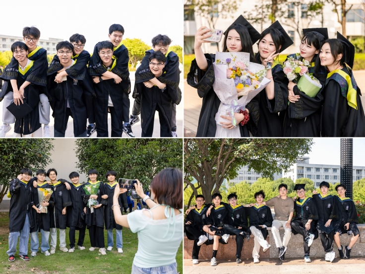校园的各个角落,都成为了毕业生们拍照留念的热门打卡地。图书馆前,他们身着学士服,手捧鲜花,留下在知识殿堂前的最后身影;教学楼旁,他们相互依偎,回忆着课堂上老师的谆谆教诲;操场上,他们奔跑嬉戏,仿佛又回到了青春洋溢的时光;土木楼边,收获学院送出的一句句美好祝福。每一张照片,都是一段青春的定格,每一个画面,都镌刻着校园的美好岁月。