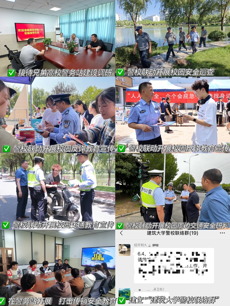 建设完成的为民警务站,集安全保障、应急处置、安全教育和政务服务等核心功能于一体,成为守护校园安宁与便利师生的综合平台。全天候安全守护:公安机关、保卫处安排专人24小时值守警务站,密切监控校园动态,确保及时接听师生来电。无论是日常安全咨询,还是紧急报警求助,均能做到迅速响应、专业处理。精准化防范教育:警校紧密联动,常态化开展覆盖交通安全、反电信诈骗等重点领域的宣传教育活动。定期组织各类安全检查,不定期开展应急防暴演练,全面提升校园安全防范能力和应急处置水平。一站式便民服务:将身份证换证、驾照换证体检等高频公安业务引入校园。自启用以来,已有近50名师生在校内警务站便捷办理了相关业务,真正实现了“服务零距离”。高效率反诈联动:建立并高效运行“建筑大学警校联络群”,对电信诈骗案件实现精准预警、快速拦截。严格落实“一案情一教育一警示”机制,通过即时警示教育,有效遏制了校园电信诈骗案件的发生率。