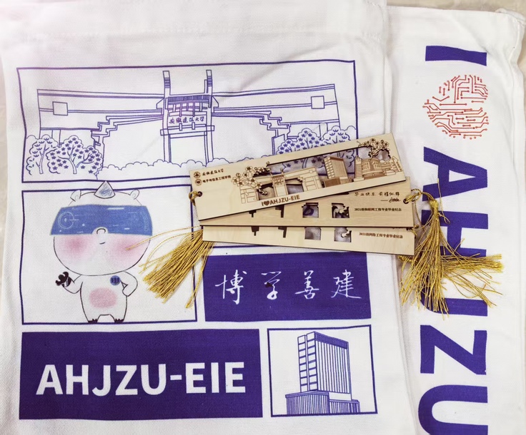 为让毕业生珍藏在校时光的美好回忆,学院精心定制了专属毕业纪念品。纪念品设计融合了学院特色与电子信息专业元素,帆布袋外观以学院学校特色元素和电路板纹路为造型,承载着专业知识与青春代码;印有学院logo和校训的纪念品,凝聚着母校的深厚情谊;定制书签内记录着大学四年重要活动的精彩瞬间,翻开便能回忆起那些难忘时刻。学院领导和老师将这些饱含心意的纪念品亲手送到毕业生手中,收到礼物的同学们惊喜万分,纷纷表示这些纪念品意义非凡,将永远珍藏这份来自母校的爱与关怀。