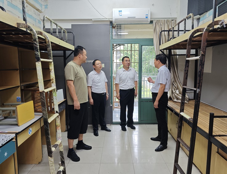 校领导一行首先来到紫云路校区光启堂,在雨中仔细查看项目建设及周边环境整治情况,强调要以精细化标准提升校园景观品质;在5-6#学生公寓,实地查看施工进度及维修改造情况,重点检查卫生间防水及吊顶改造情况,指出“学生公寓是师生在校的‘家’,必须以‘时时放心不下’的责任感做好每一处细节”;在值班食堂,仔细查看卫生、食材储备及餐具消毒情况,要求后勤部门严格落实食品安全责任制,让师生吃得健康、吃得满意。